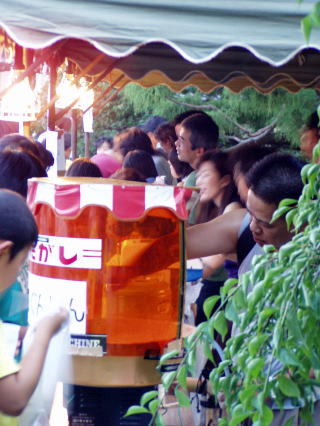 どうなるかと心配した初めての夕涼み会。想像もしなかった人出にびっくり!大慌てでした。来てくれた知り合いに、急遽お手伝いを頼んでしまいました。 |